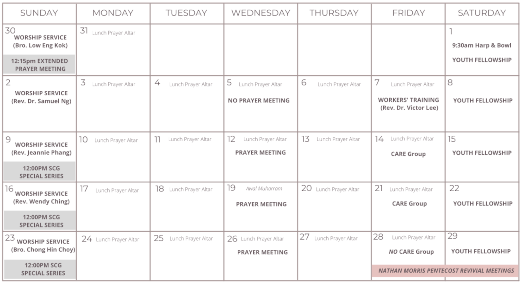 Church Calendar & Announcements July